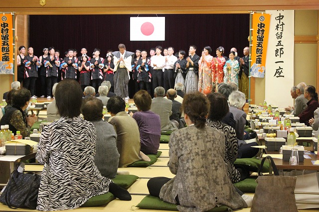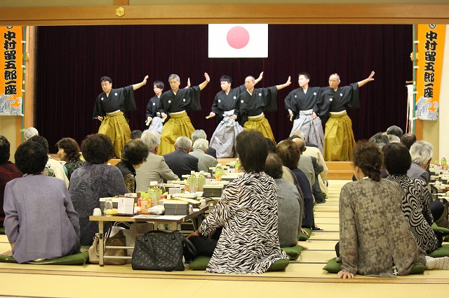 まずは座長による口上、そして中村踊り同好会の女性4名による艶やかな踊りが行われました。