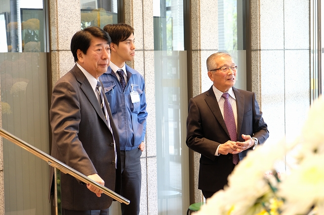本社ロビーに展示されました。この度はそのお二人が、改めてご来社され