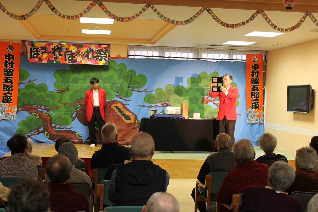 10月29日(土)に、グループホームぽ~れぽ~れ四十万にて留五郎一座の公演がありました。