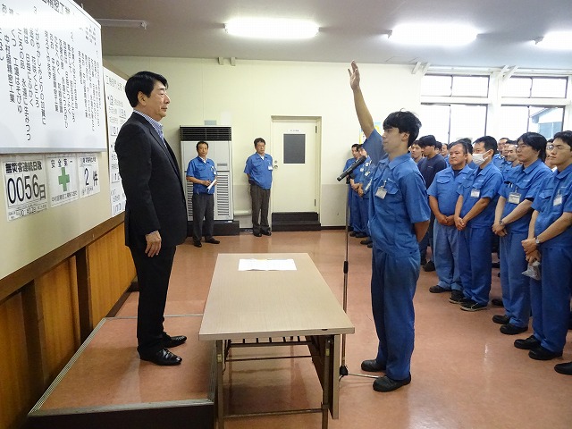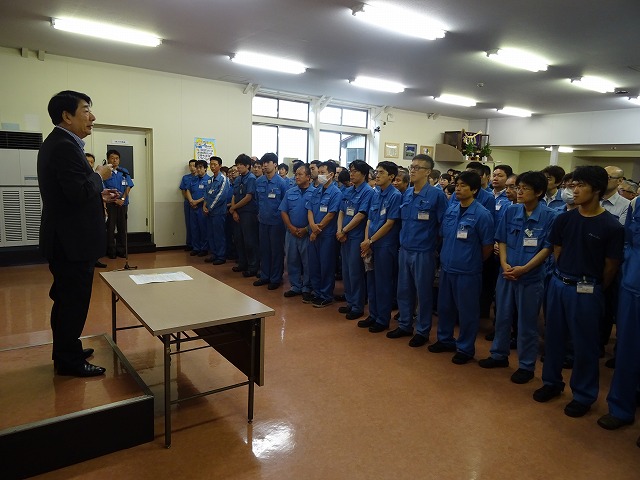 激励の言葉がありました。これに対し、参加チームを代表し、生産本部の洞さんより