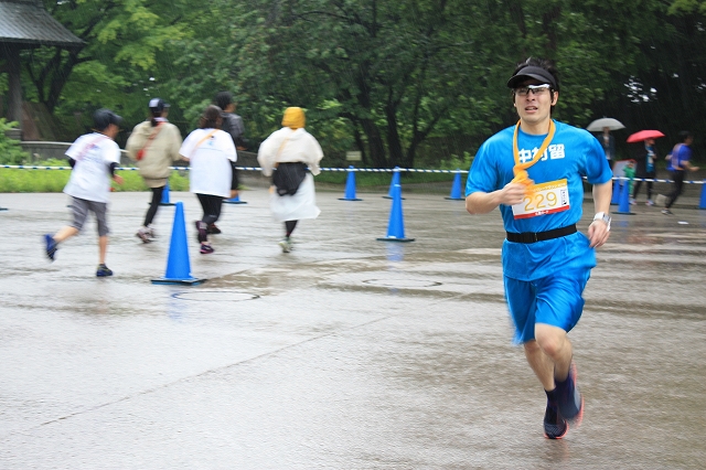 今年はあいにくの大雨で、参加者たちは土砂降りの中タスキをつなぎ、42.195kmを完走しました。