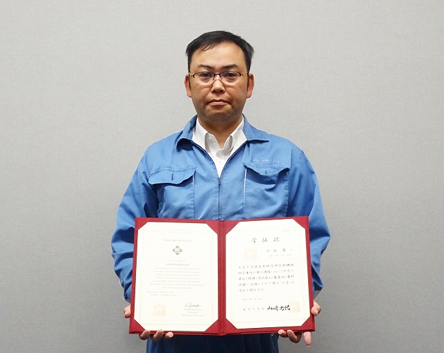 金沢大学大学院より学位の授与 2019.03.28 このたび、要素開発部部長中西賢一さんが3年間金沢大学大学院にて学び、 自然科学研究科機械科学の博士(工学)の学位を授与されました。 今後学んだ、知識を基にIoTを活かした新技術を製品開発に取り組まれるそうです。