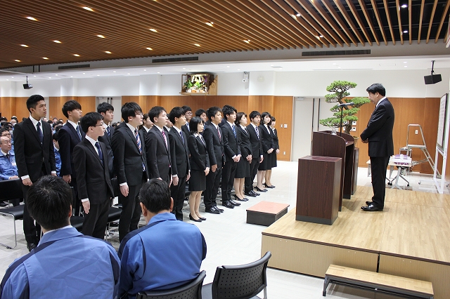新厚生施設にて入社式 2019.04.02 4月1日 中村留では、新しい厚生ホールにて入社式が行われました。 新入社員22名を前に、中村社長から祝辞が述べられました。 『 一生懸命努力しても 結果として報われない事は有る、しかし 無駄な努力はない」と強いメッセージをのべられました。 中村社長の熱き思いにふれた新入社員は、今日より1年間の研修に入ります。