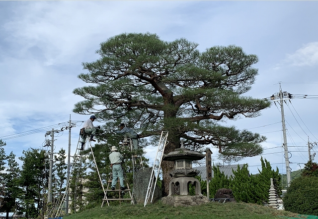 晩夏の風景 2019.09.06 構内にある 「飛翔の松」のひと枝ひと枝ごとに庭職人さんが 鋏をいれてきれいに選定して頂いています。 今年の夏も ここ石川県も連日30度超えのきびしい夏を迎え ダメージを受けた松の葉を整えてもらっています 「人の目から見える自然の美は、実は多くの人の手がかかっている証明でもあります。」 今朝も、正面入口の回転ドアには、キジが自分のテリトリーの見回りに来ている風景を 確認できました。